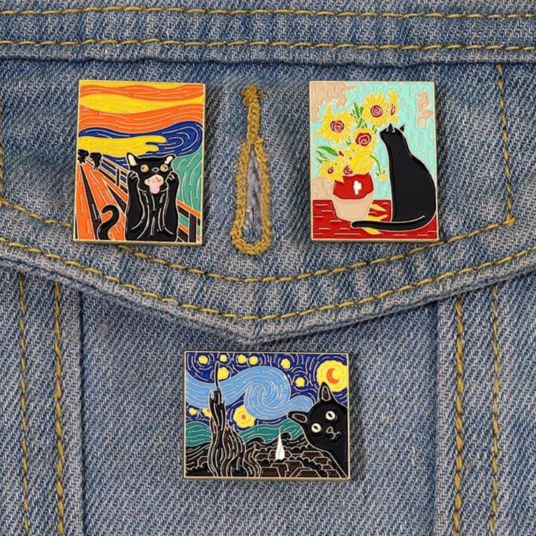 Check out our artsy classics.Featuring a sassy cat in "starry nights ", "the scream" and "the sunflowers". Accessorize your favorites by adding these art pieces.